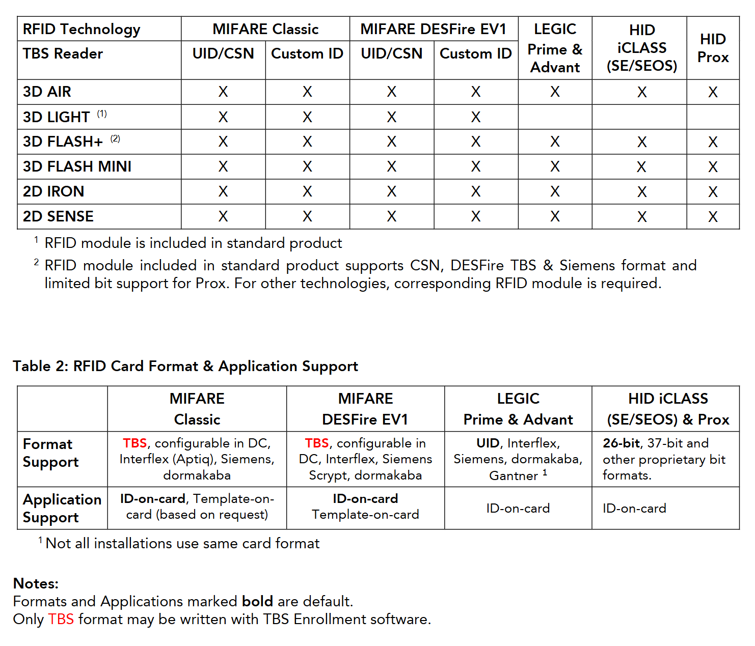 The TBS terminals by default try to read the TBS ID from Mifare Classic and Desfire card. The TBS ID is written in a custom location of the card using USB RFID Writer (bought from TBS) in Enrollclient 4 desktop software. If there is no TBS ID present ...